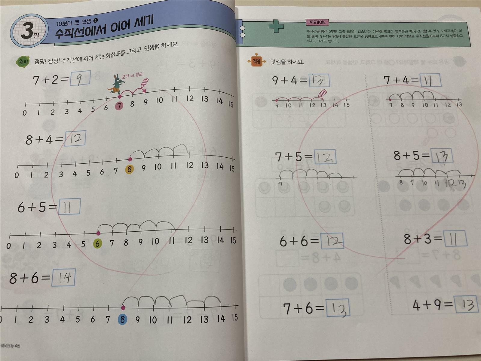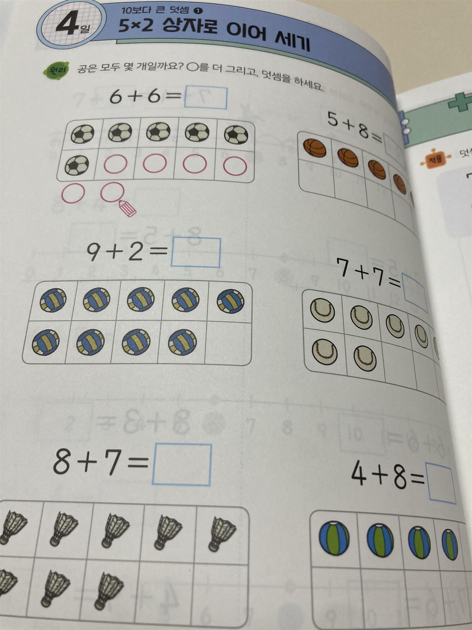 아이가 어려워하는 '10보다 큰 덧셈과 뺄셈' 교재를 체험하게 되었습니다.