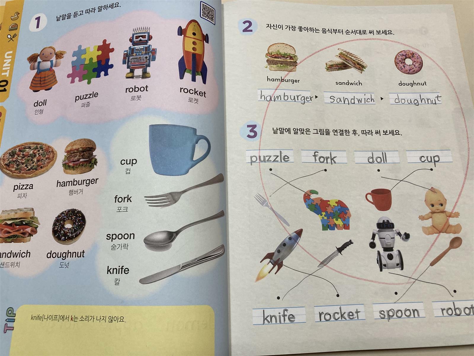 Activity에서는 분절된 단어를 하나의 단어로 연결하고 그림과도 연결하여 완성된 단어를 써보는 활동과,