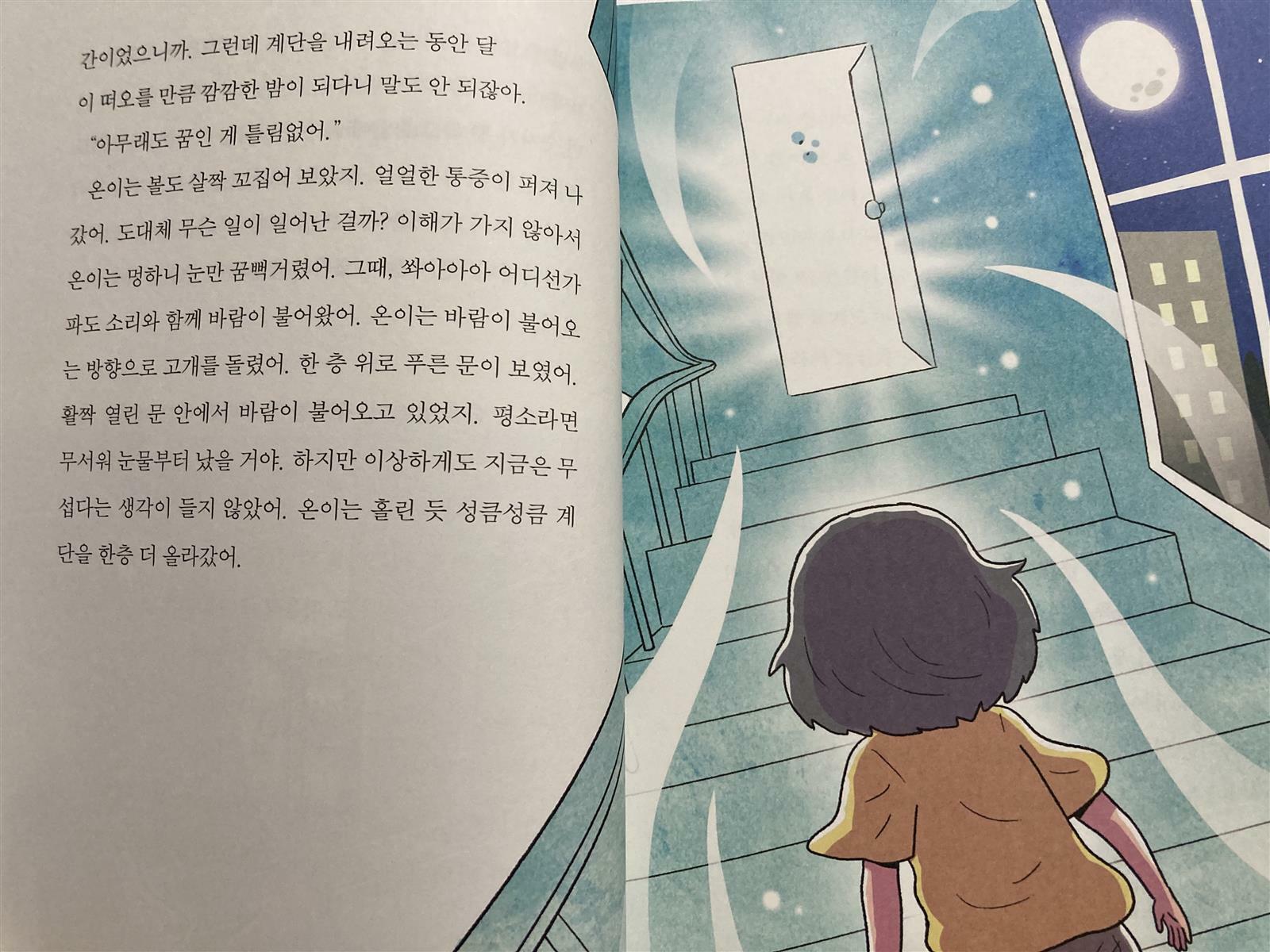 고개를 돌려보니 푸른 문 하나가 빛을 내며 활짝 열려 있었어요.