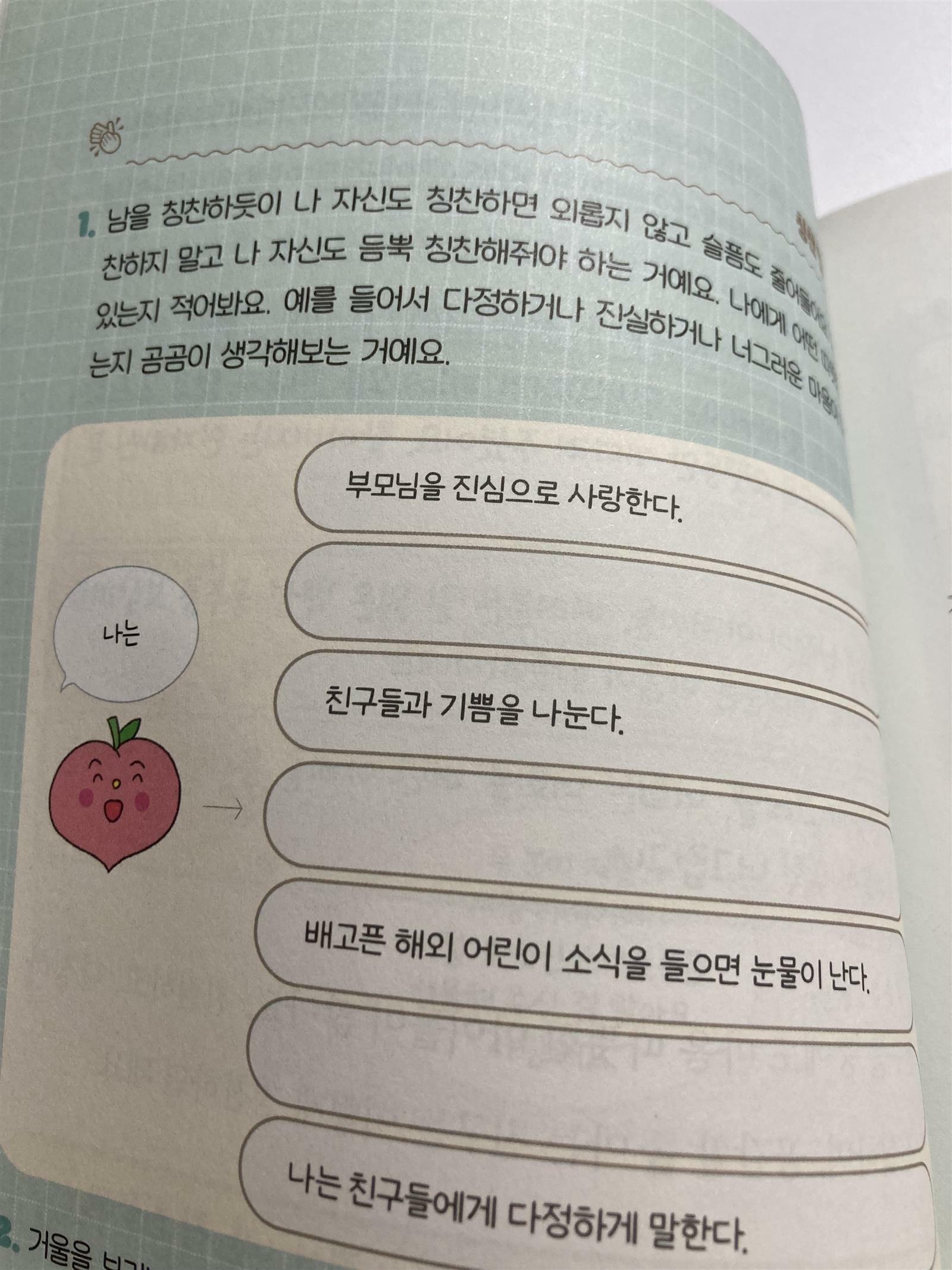 아이들도 이 사실을 이 책을 통해, 또 학교 생활을 꾸준히 하며 깨닫고, 경험하며 삶을 살아가는 긍정적인 태도의 필요성을 느끼면 좋을 것 같습니다.