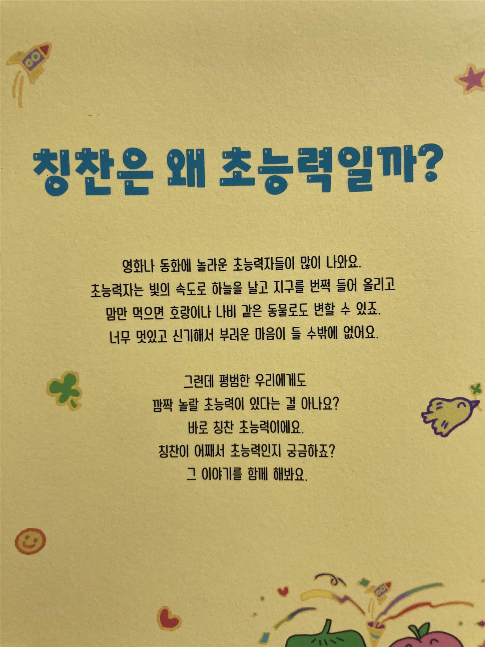 칭찬으로 세상을 바꿀 수 있는 초능력을 발휘하고 싶다면, '칭찬 초능력' 추천합니다!