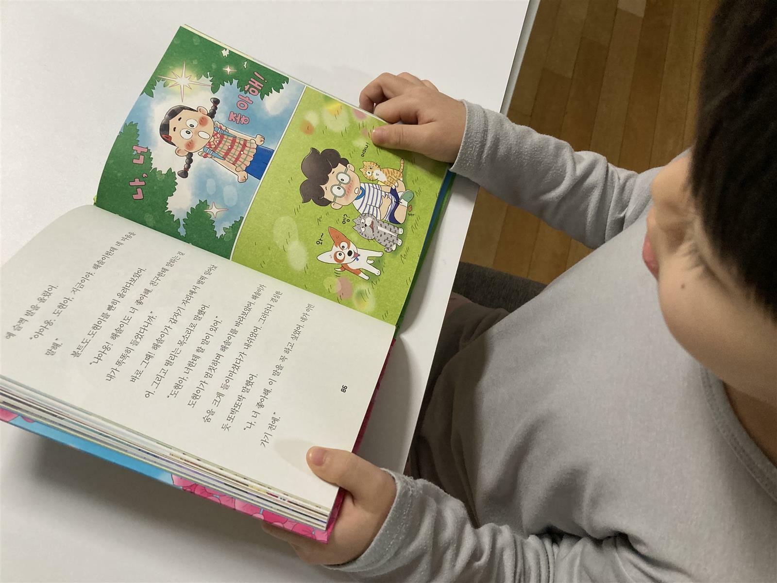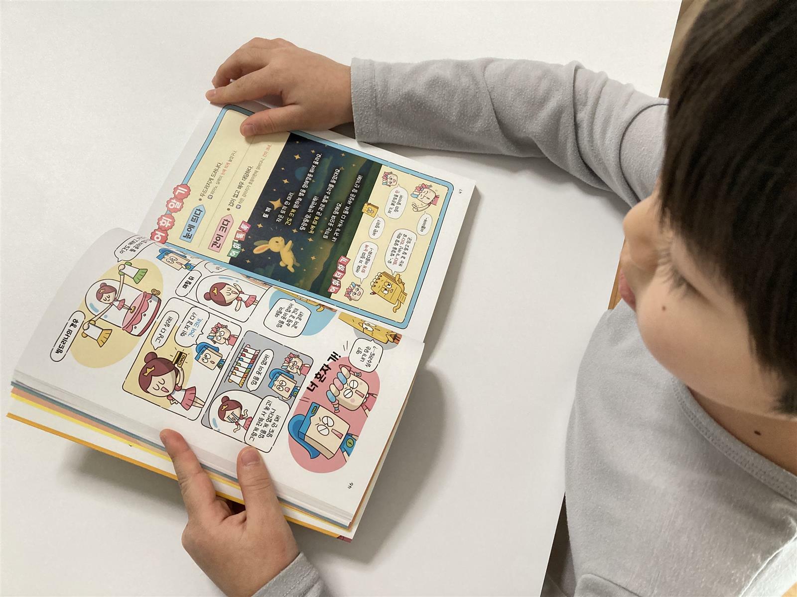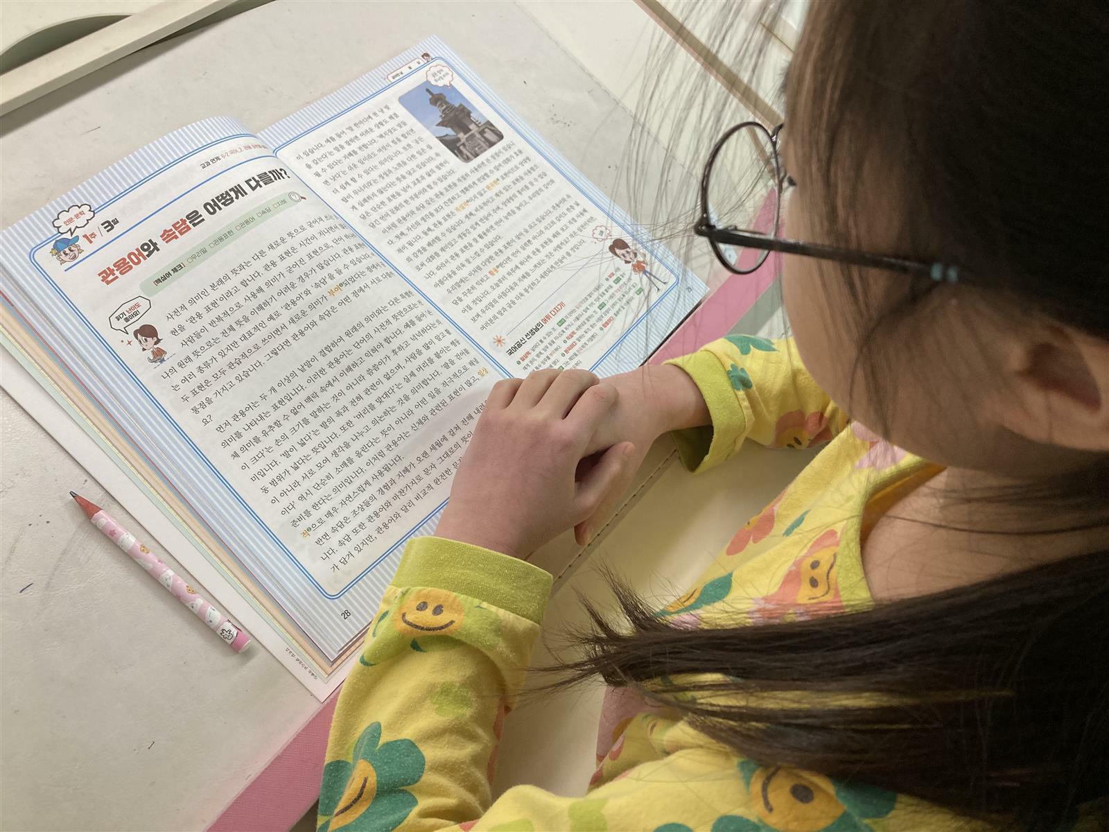 신문 독해로 구성된 책을 자주 아이가 접할 수 있도록 도와주고 있어요.