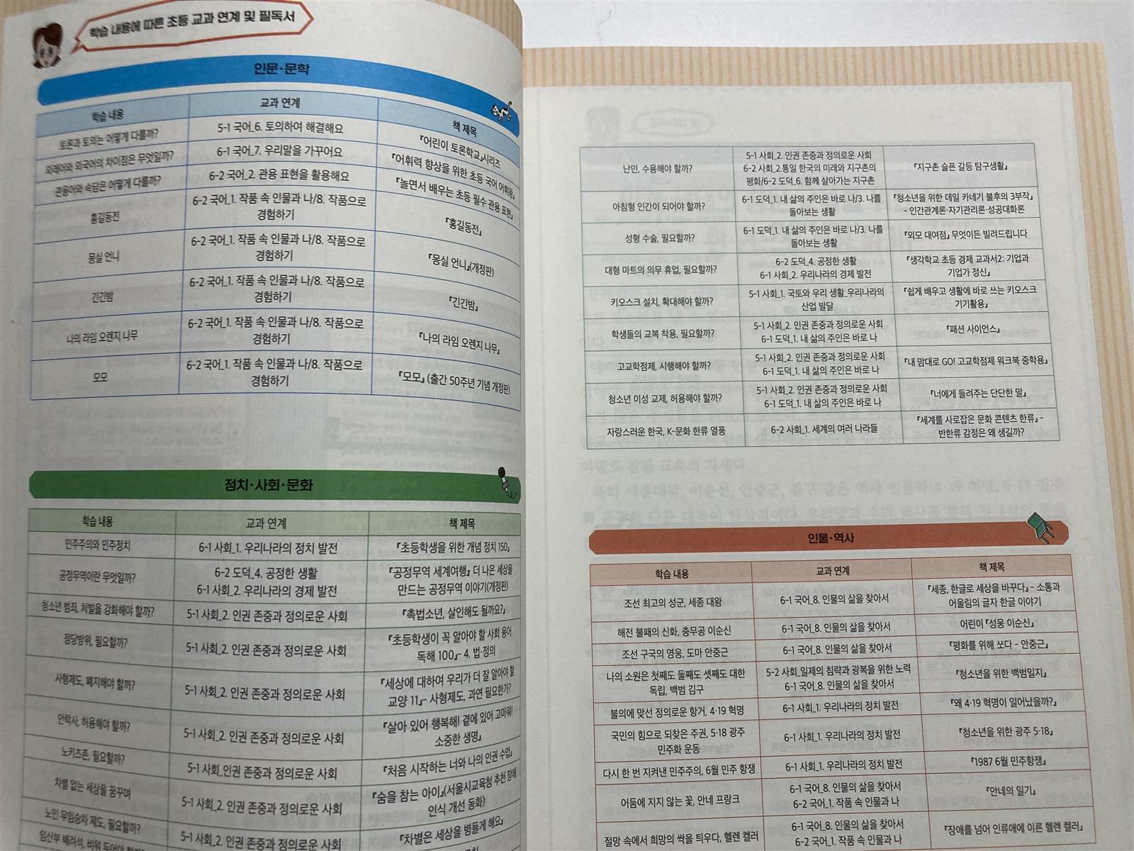 각 학습 내용에 따른 교과 연계 및 필독서 목록도 함께 나와있기 때문에