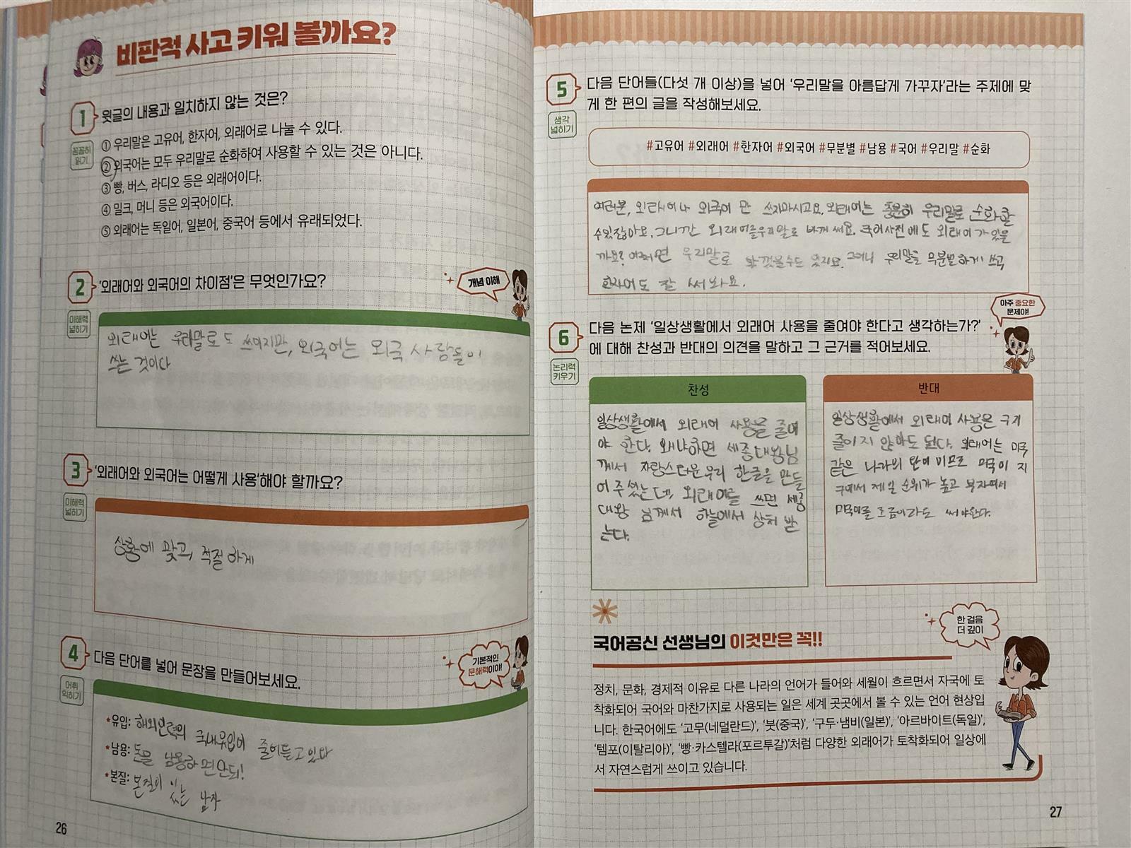[비판적 사고 키워 볼까요] 코너에서는 지문을 통해 알게 된 내용을
