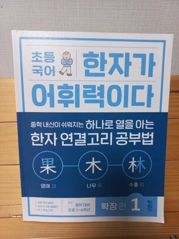 《 초등국어 한자가 어휘력이다 확장 편 1》에는 교육부 지정 사용한자 중학교용 900자를 바탕으로 하여 60자를 익히면서, 초등학교 5~6학년 교과서와 중학교 1학년 교과서 어휘 240개와 사자성어 12개를 1권을 통해서 학습할 수가 있네요~