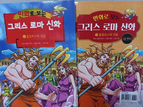 《만화로 보는 그리스 로마 신화 1권 - 올림포스의 신들》은 본권+워크북 세트로 구성된 것이 특장점이예요~