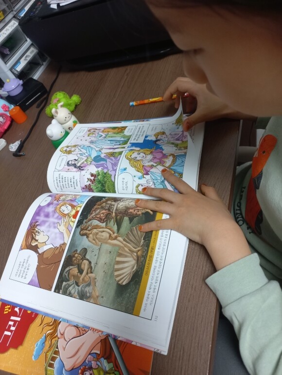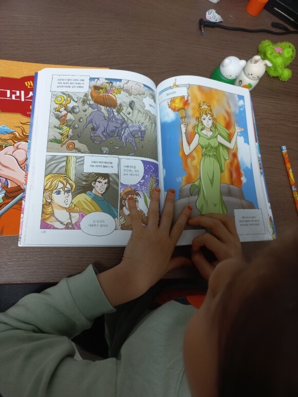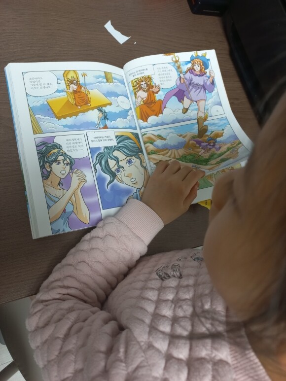 꼬마 아가씨에게도 '그리스 로마 신화'를 소개해 주고 싶지만, 너무 어렵지가 않을까 싶어서 시간만 보내다가 있다가 《만화로 보는 그리스 로마 신화》가 있어 슬쩍 멍석을 깔아 주었더니~ 정말 재미있게 읽네요!!