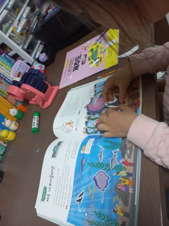 중간중간 색칠하기, 스티커 붙이기, 게임, 찾기 등의 다양한 활동도 겻들여져 있어서 신나네요^^