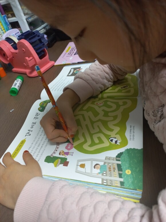 저녁시간 피곤하니 일찍 자고 다음 날 워크북도 한번 풀어보라고 말해 두었는데, 그냥 바로 하고 싶다고!! 요로큼 정성을 다하여 워크북도 풀어가네요~