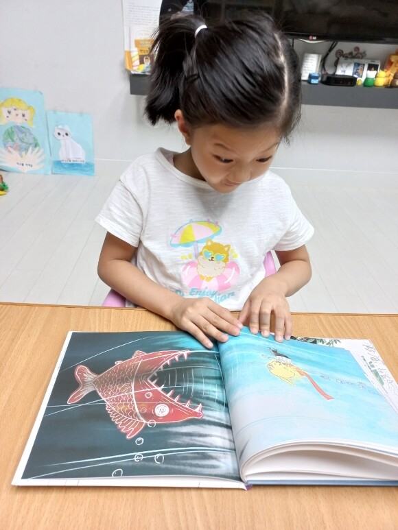 이번에는 무시무시한 이빨을 드러내면서 물고기가 달려드니...ㅋㅋ 어떤 감정으로 그림책을 보는 것인지,