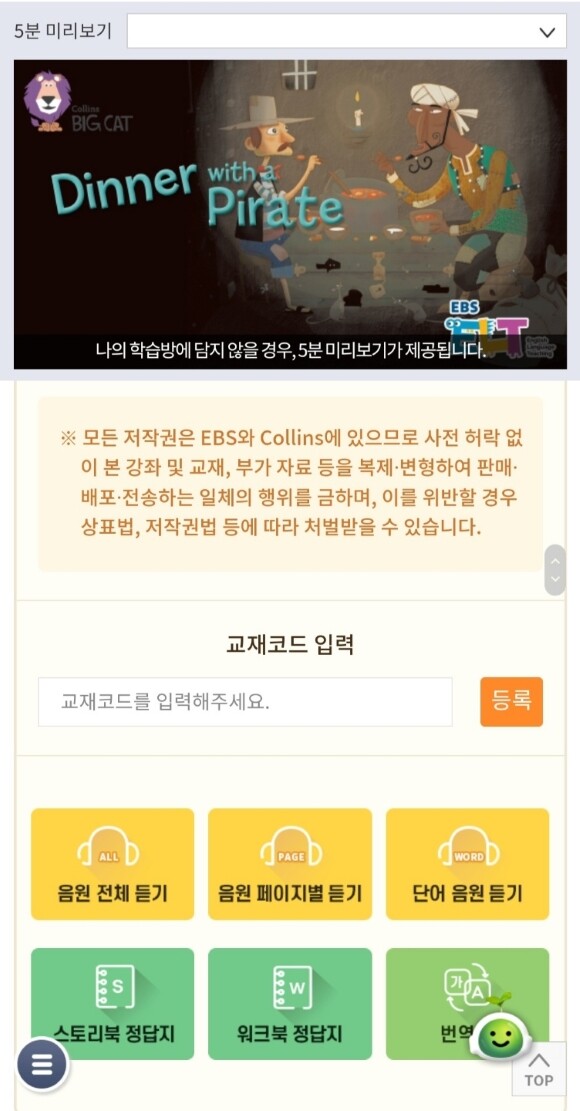 관련 EBS 사이트로 들어가서 코드 입력하면~