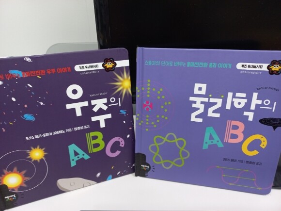 꼬마아가씨가 만나본 도서는 알파벳 26자로 구성된 흥미진진한 이야기(물리학, 생물학, 우주, 수학, 과학, 공학, 해양학, 경제학, 지리학) 9권 도서 시리즈 중에서 《우주의 ABC》와 《물리학의 ABC》이네요!