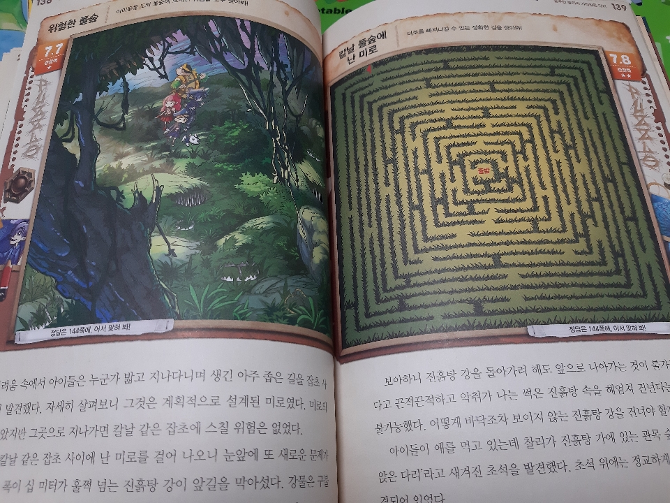 아이와 함께 ^^미로 찾기, 틀린 그림 찾기, 도형 유추하기, 수학 문제 등 스토리와 긴밀하게 연결된 퀴즈들을 풀면서 관찰력, 분석력, 수리력, 상상력, 사고력 등 두뇌 자극을 톡톡히 ㅋ 받게 되네요~!