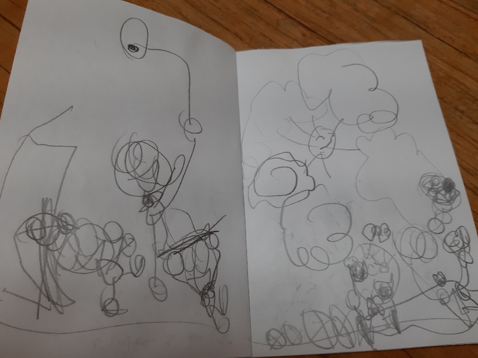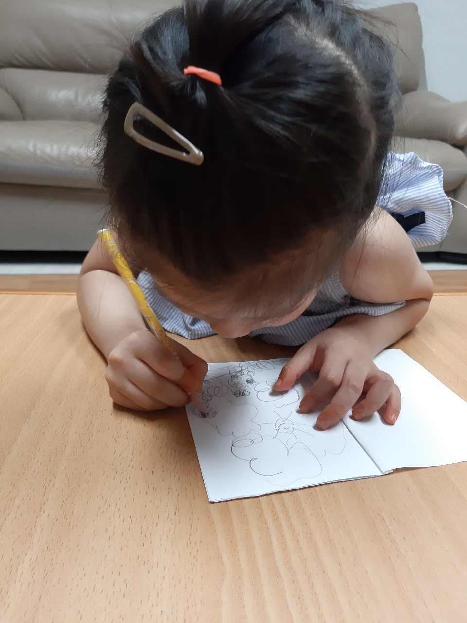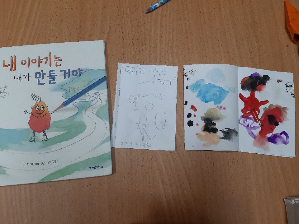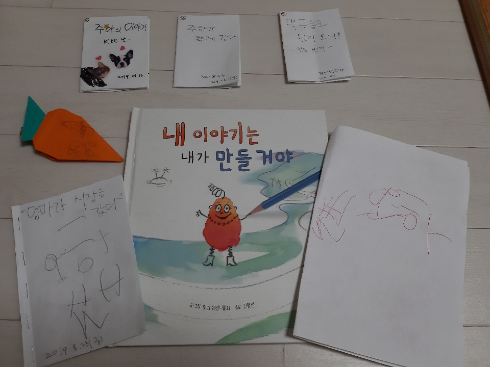 자기도 작가가 되어 그림책을 그리겠다고 열씸히 그리네요.