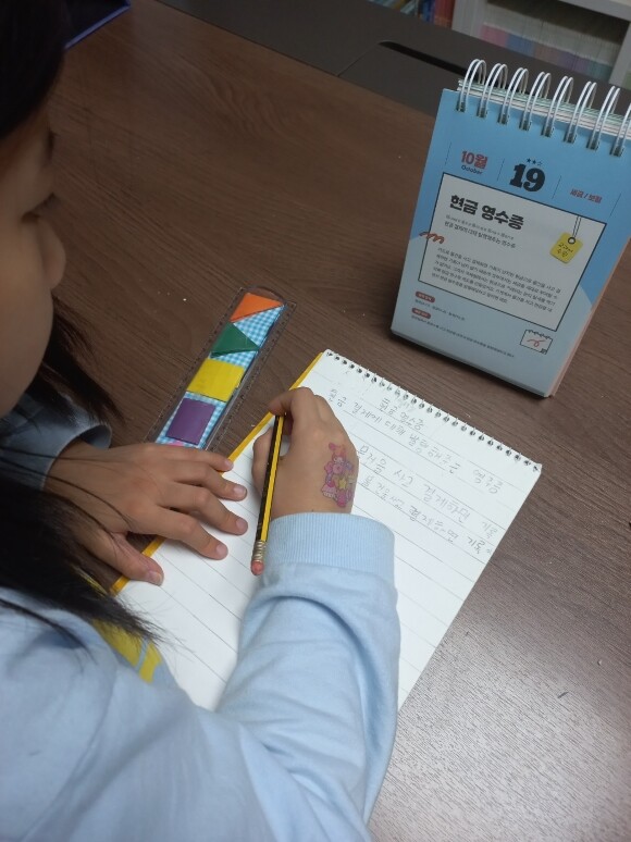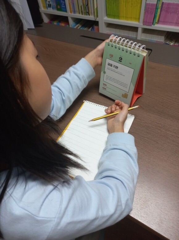 꼬마 아가씨와 필사를 해 보면서 경제용어를 익혀보는 것도 의미가 있을 듯 해서, 10월 19일에 꼬마 아가씨와 함께 해 보았네요~ 참고로, 날짜 위에 '경제용어 난이도'가 별의 모양으로 표시되어 있는데 별2개 라고 되어 있네요~
