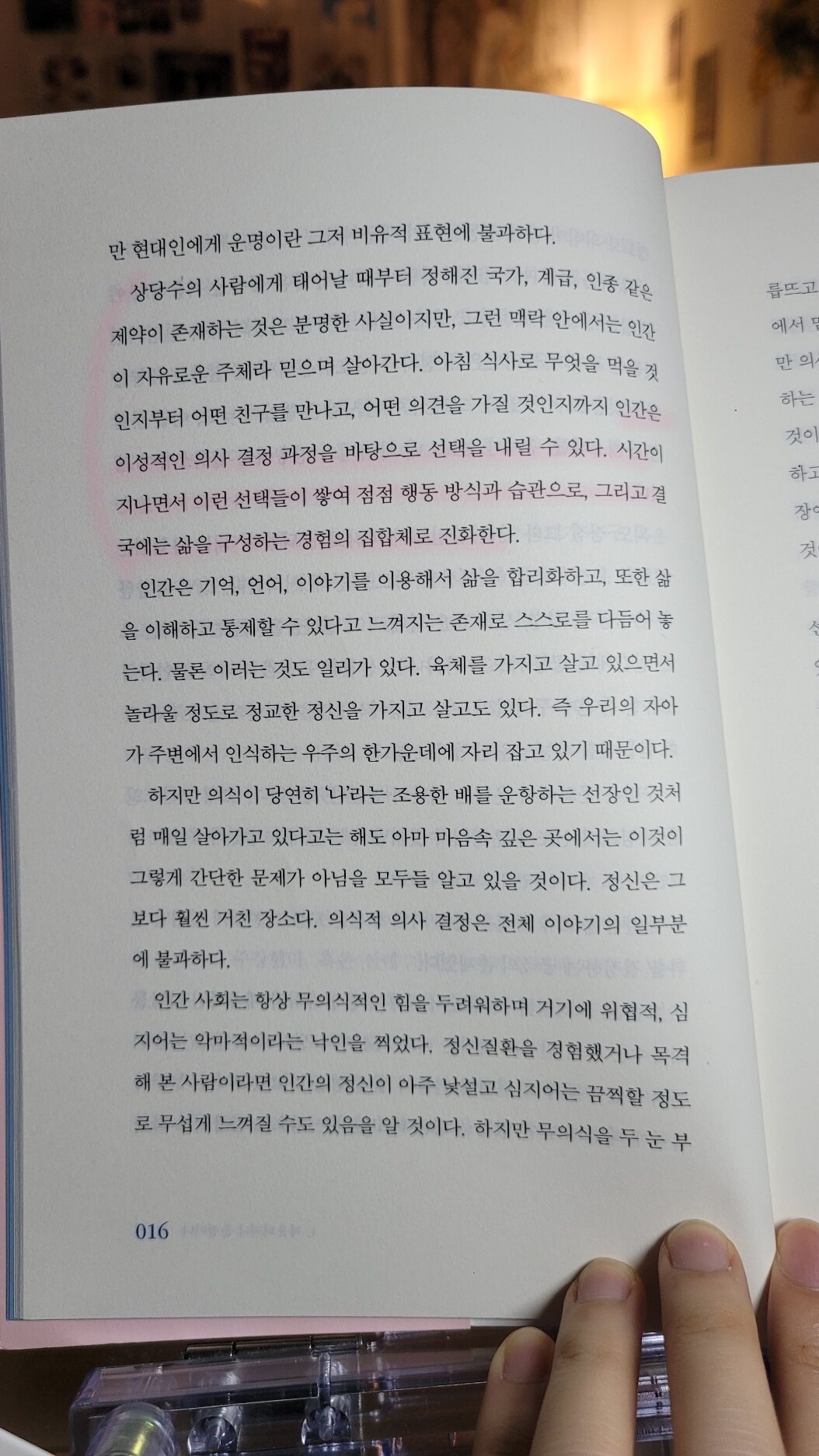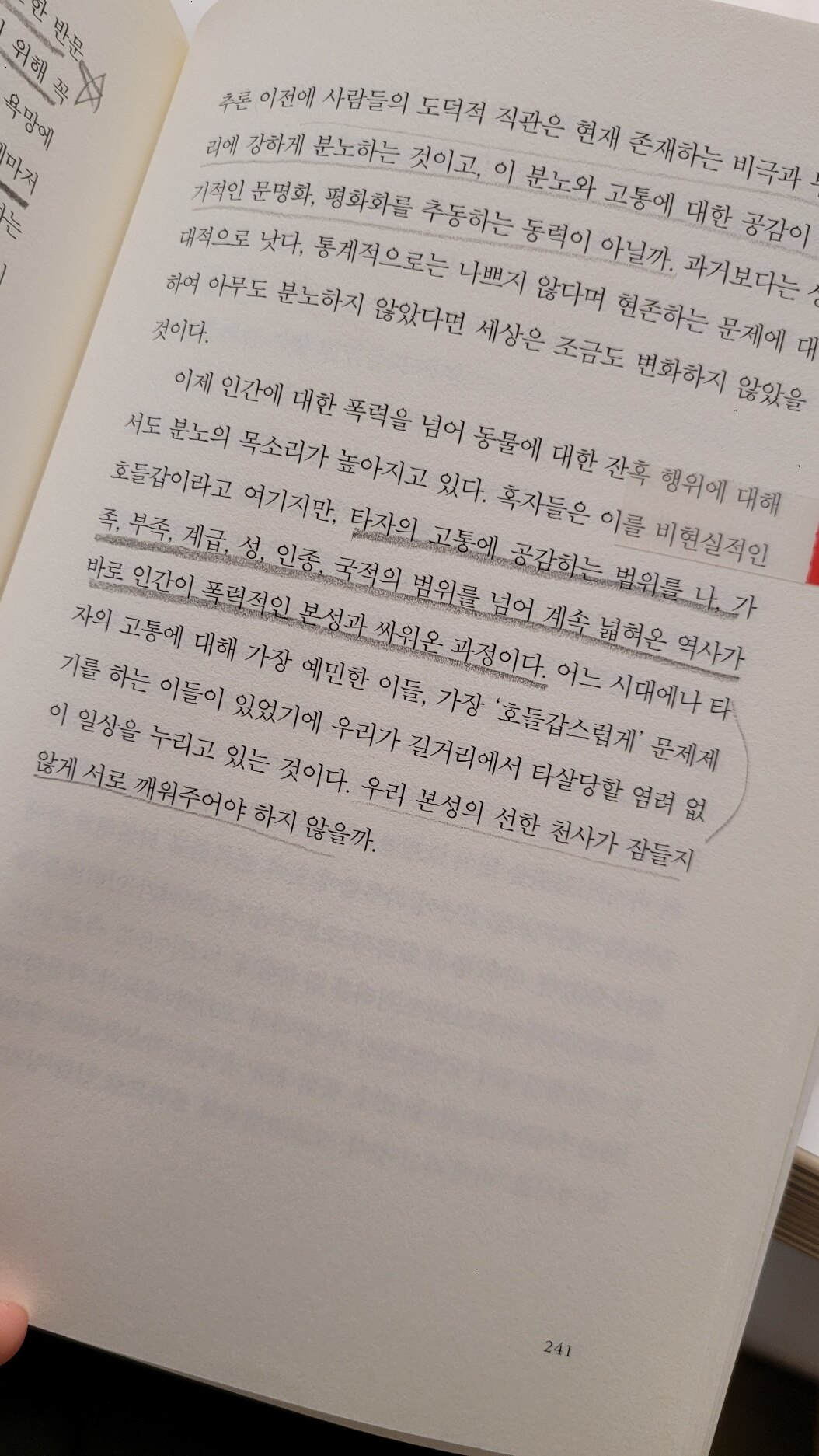 다 읽었다..!문유석 판사님의 <쾌락독서>는 단숨에 읽었다. <개인주의자 선언>은 단편으로 조금씩 읽는 게 좋았다. 정말 쬐금씩 읽다가 몇 달 만에 다 읽었다.이 책에선 문유석 판사님이 전반적인 일상 속에서 느끼는 생각들이 많다. 그래서 가치관이 더 많이 드러나는 것 같다.- 모든 곳에 희망이 있어야 사회가 유지된다.- 인간의 본성은 악하다, 아니 이기적이다. 그것을 인정하고, 사회를 유지하기 위해 법과 제도가 필요하다. (여태까지 사회는 그렇게, 점점더 선하게, 발전해왔다.)- 우리는 서로의 선한 천사가 잠들지 않게 일깨워주어야 한다. 개인적으로 프롤로그랑 에필로그가 제일 재밌었다. ㅎㅎ