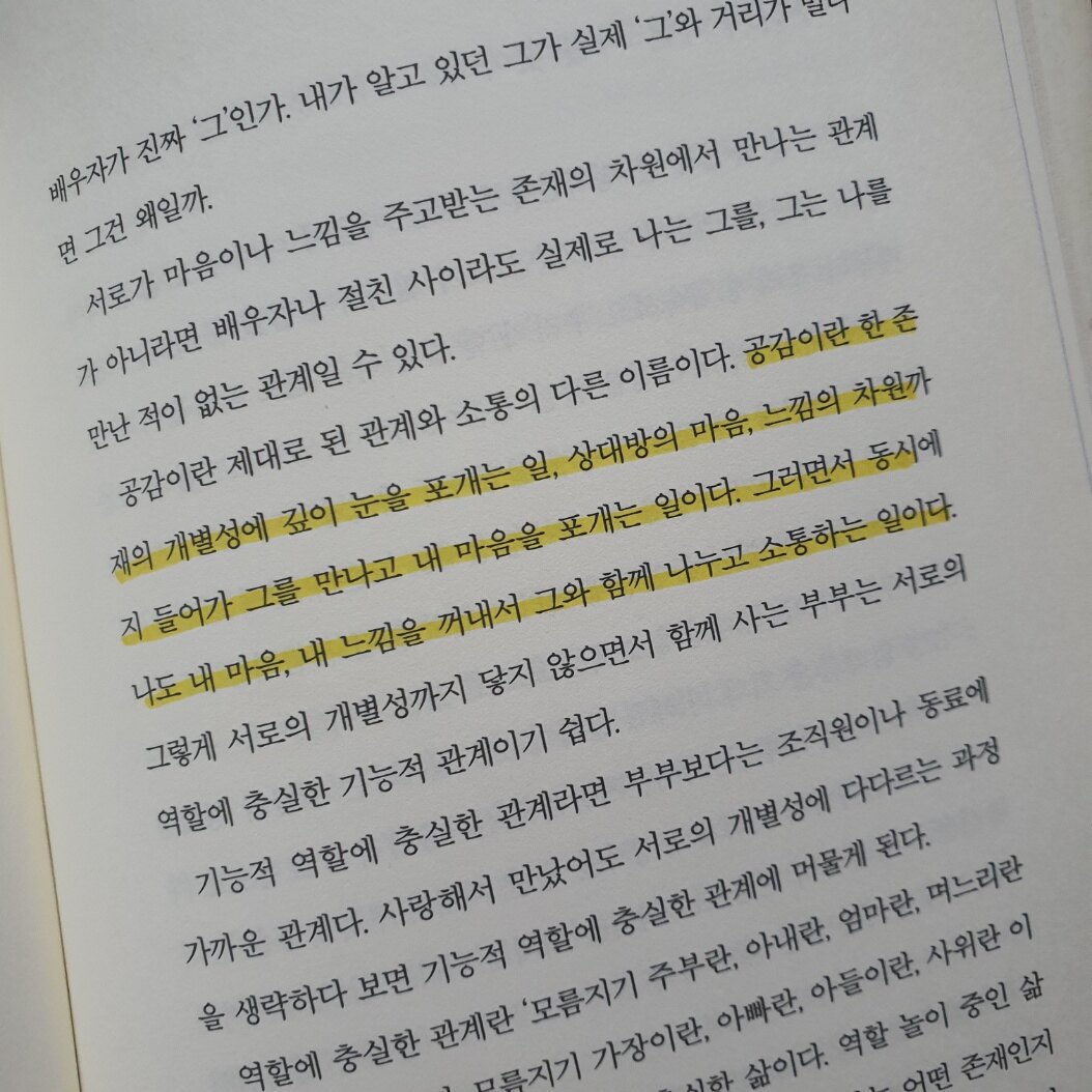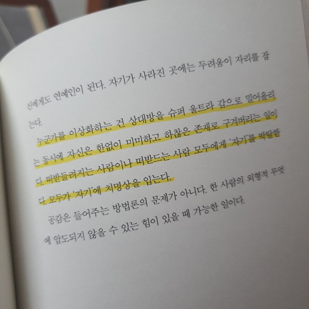 작년에 읽고는 크게 깨닫고 공감을 잘 해야지 다짐했는데...... 다시 읽으니 아직 나는 멀었다는 생각이 든다.^^;; 제대로 된 공감은 진짜 너~~~~무 어려운 것 같다.