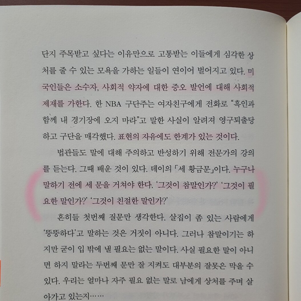 누구나 말하기 전에 세 문을 거쳐야 한다.1. 그것이 참말인가?2. 그것이 필요한 말인가?3. 그것이 친절한 말인가?요 생각이 베이스가 될 수 있게 인지가 필요하다.평소엔.. 이거 생각하다가 말 못할듯 ㅎㅎ