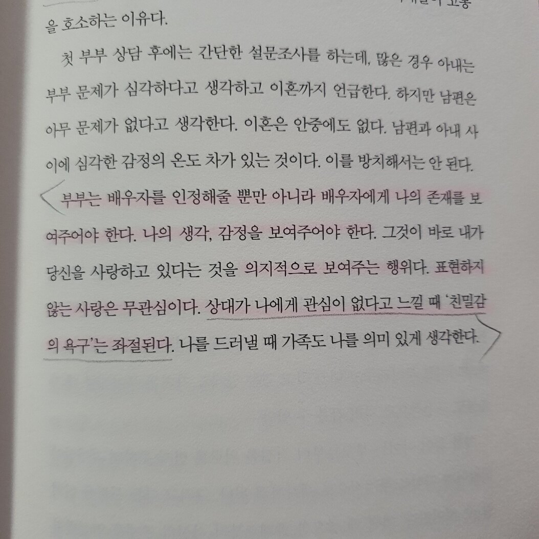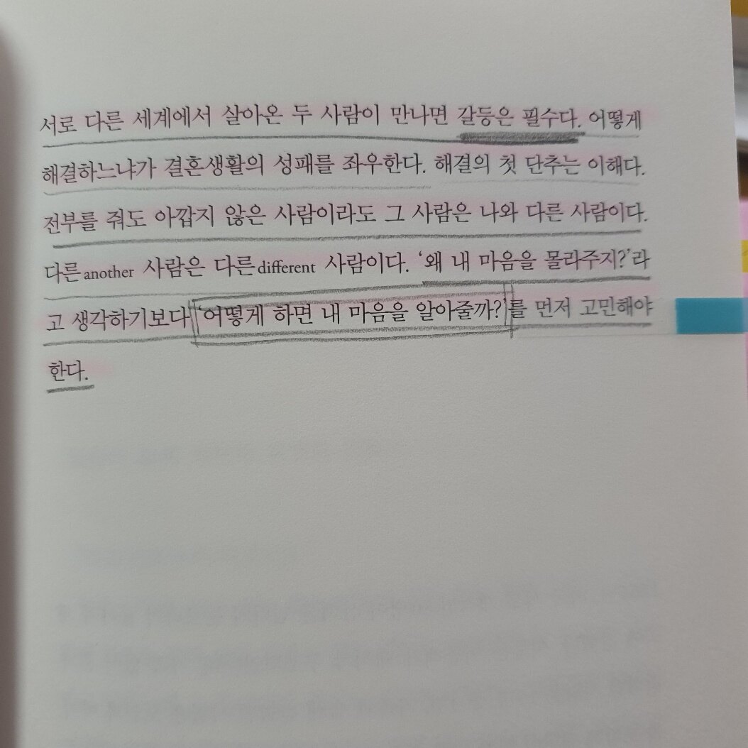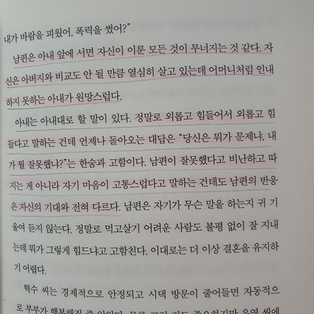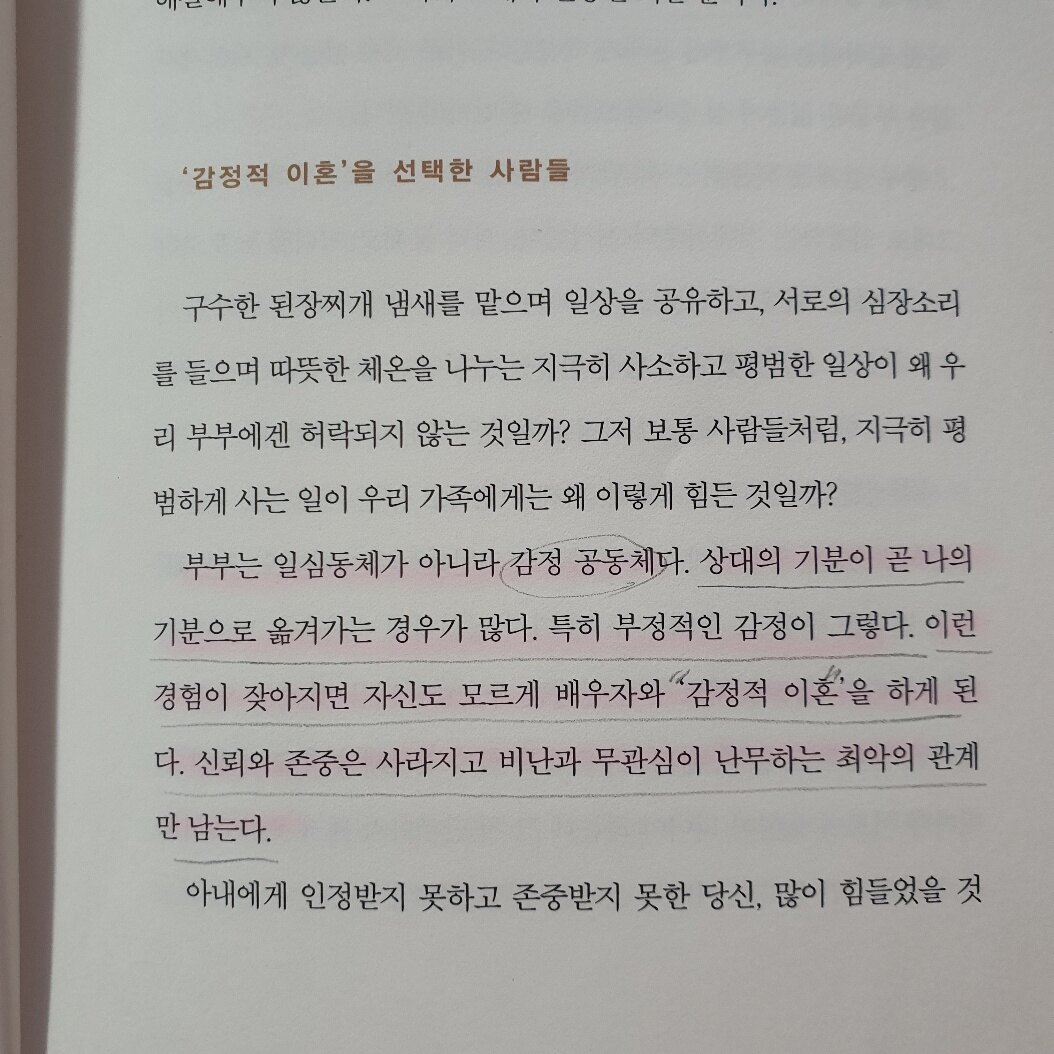 당연한 말들만 있을 줄 알았는데, 다양한 부부의 사례들이 자세하게 나와있어서 좋았다. 생각보다 표현이 강력하고, 전하고자 하는 메세지가 뚜렷해서 기대 이상이었다.