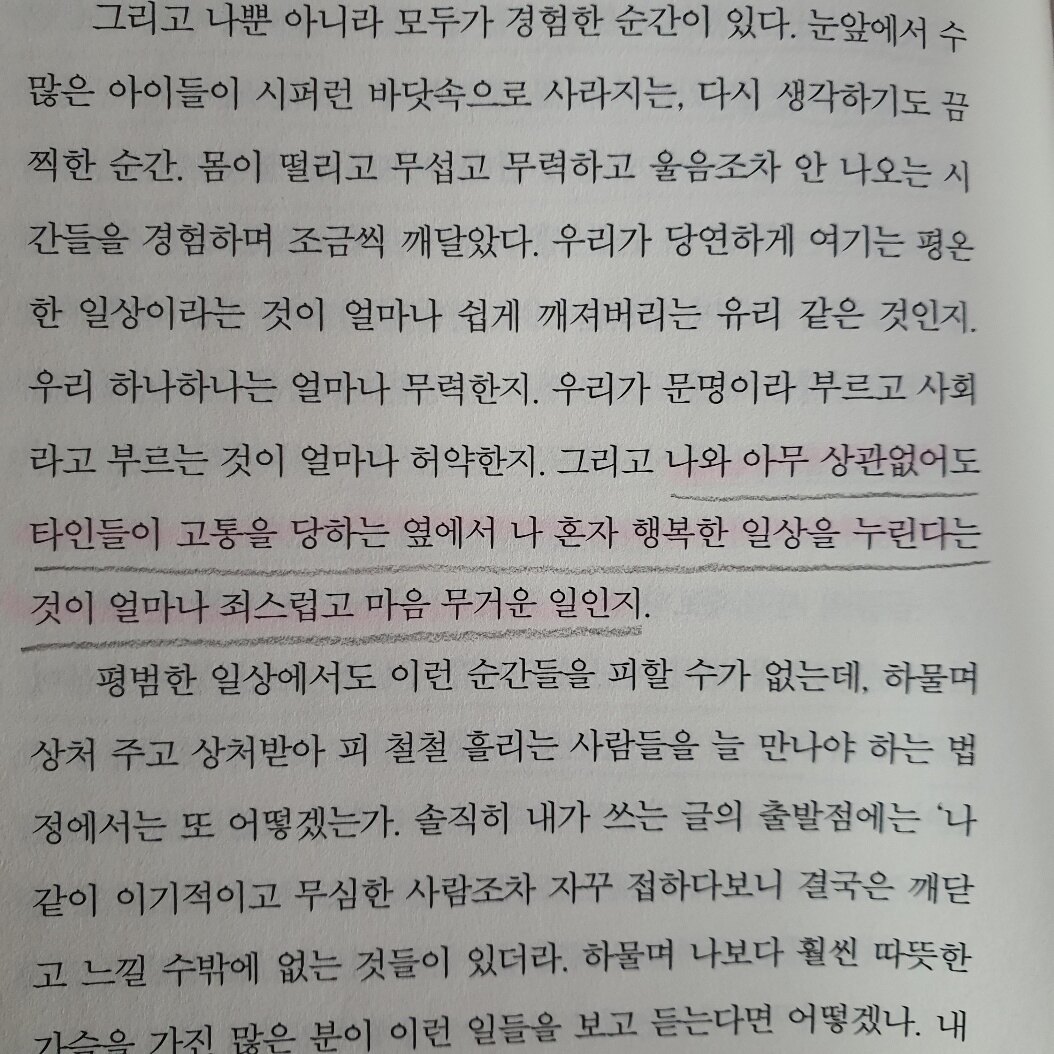 의식적으로 타인의 고통을 알려고 노력해야 한다.
