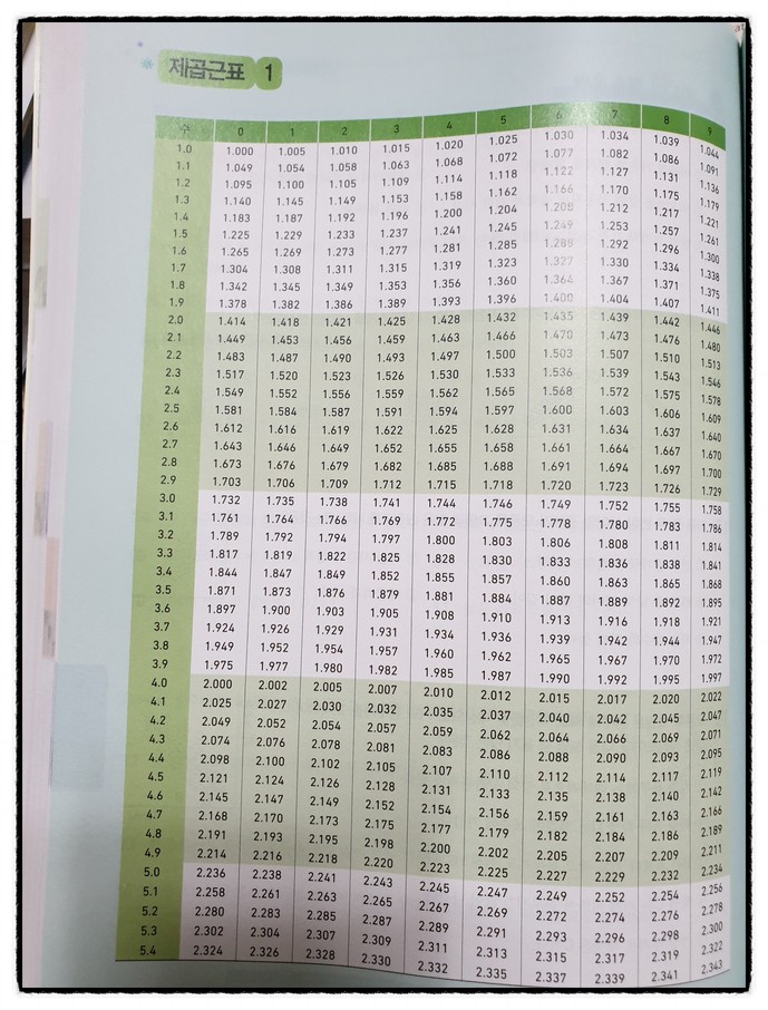 부록으로는 필요한 제곱근표를 비롯한 삼각비의 표까지 완벽구성되어 있습니다.
