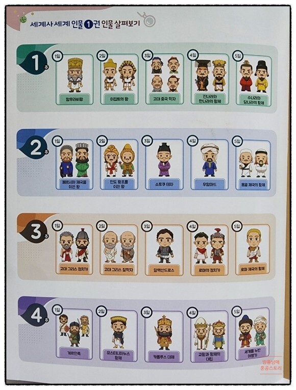 저희는 고대부터 중세까지의 인물을 다룬 세계인물 1권으로 시작했어요.