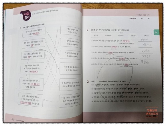 어휘의 뜻을 바로 연결하고, 서로 비슷한 어휘를 알아보며, 맞춤법에 맞는 어휘를 확인할 수 있습니다.