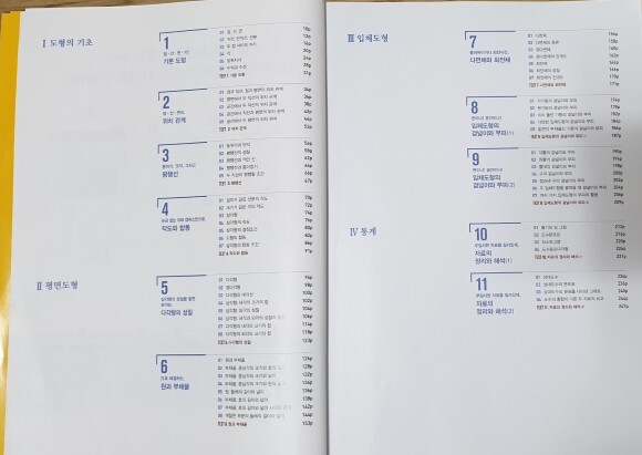 기하(도형)는 중학교 5개 영역의 50%나 차지한다는군요.