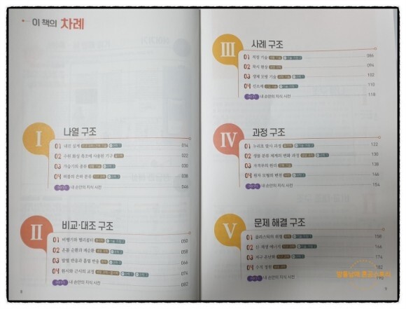 이 책에 수록된 다섯가지 글의 구조는 여러 국어 시험의 지문에서 자주 접하게 되는 대표적인 글의 구조라고 합니다.