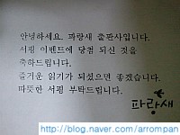 메모지를 항상 책 첫장에 끼워 보내 주십니다. 어느 분의 블로그를 보러 갔다가 알게 된