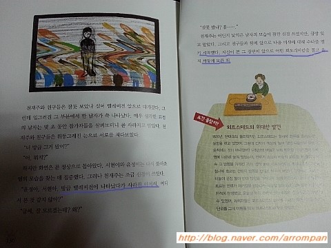 그림을 보는 재미와 이야기의 흐름을 그림 속에서 파악할 수 있게 하지요..