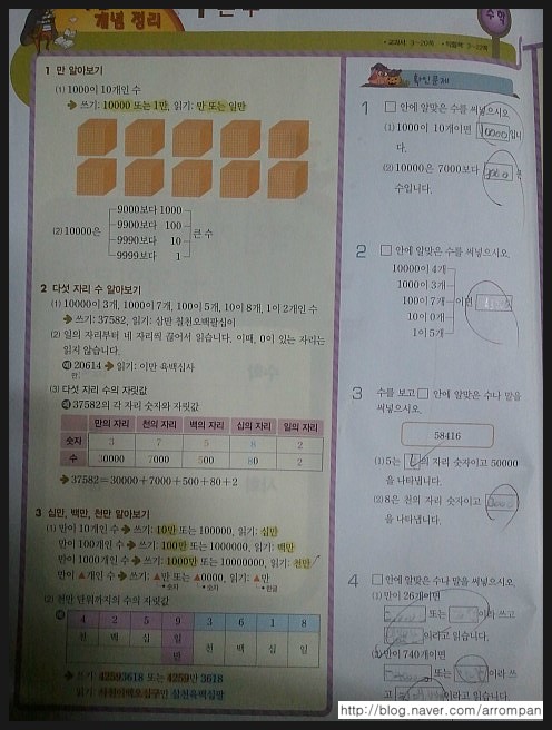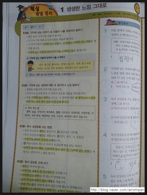 정답 풀이에는 핵심개념문제집의 답을 먼저 알려 주고..
