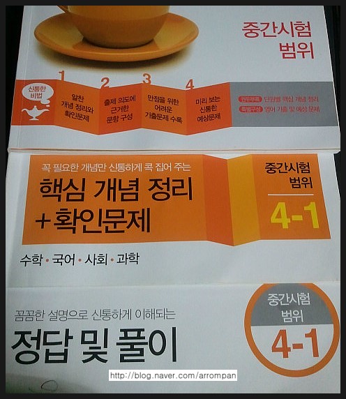 중간시험범위 문제집+핵심개념정리.확인문제집+정답 및 풀이집 이렇게 세 권으로 구성돼 있는데요.