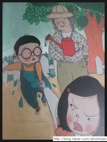 마침 꽃밭에 물주시는 할머니가 옷에 물을 뿌려 친구들에게 놀림당할 위기에서 벗어나고..