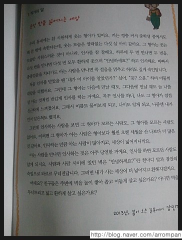 그리고, 작가의 어릴 적 경험담을 뒤에 실어 놓았는데~ 모르는 이도 인사를 나누면서 알게 된다고...