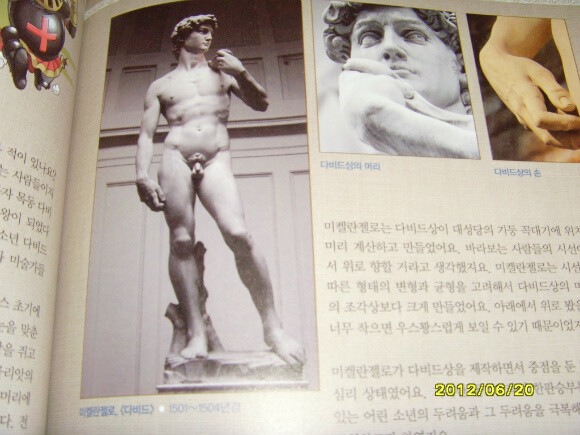 천지창조나 최후의 심판으로 유명한 미켈린젤로는 사실 자신이 조각가임을 자랑스럽게 생각하고 늘 자신을 조각가로 칭했는데..그의 대표적인 조각작품인 다비드가 처음엔 피렌체 대성당의 기둥꼭대기에 올려질 목적으로 만들어졌지만 다비드의 누드가 너무 적나라하다는 논란이 일어서 결국 시뇨리아 광장에 세워지게 됐다는 것은 몰랐던 사실이라 너무 흥미롭다.다비드상을 만들때 대성당의 기둥꼭대기에 세워질것을 계산해서 머리를 보통의 크기보다 크게 만들었다는 점도 흥미롭다.