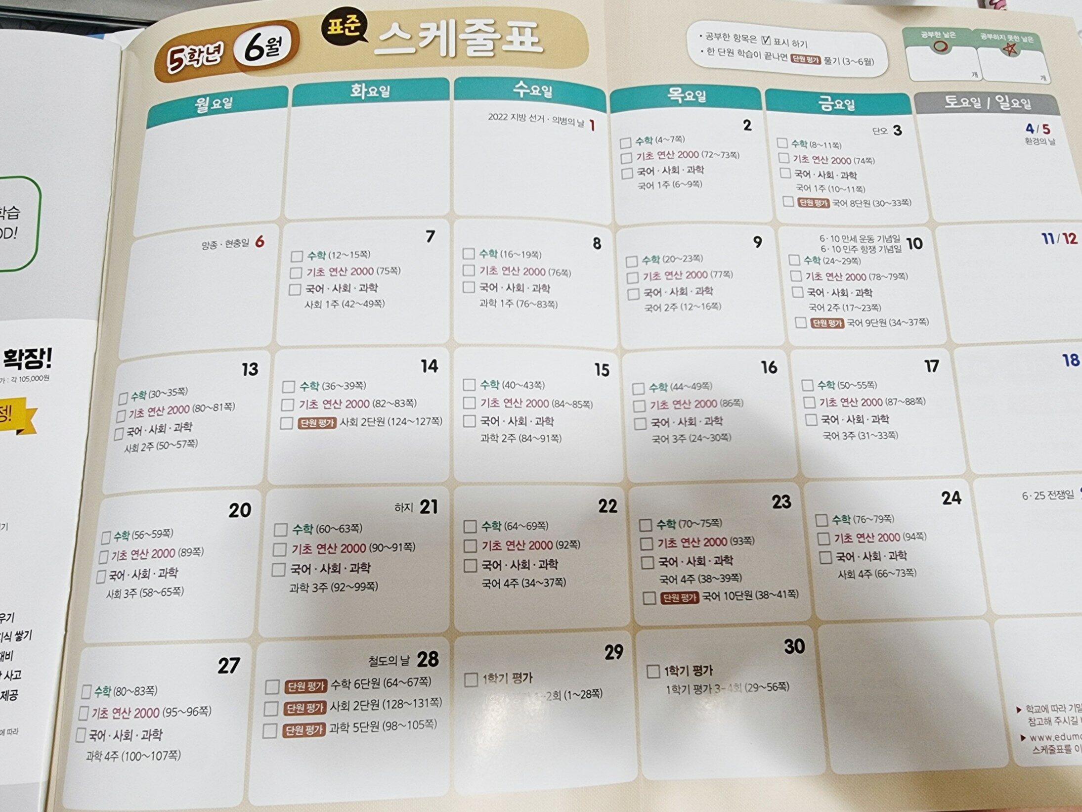 매일 한 장씩 5주간 체계적으로 학습할 수 있도록 만들어져 있어요.