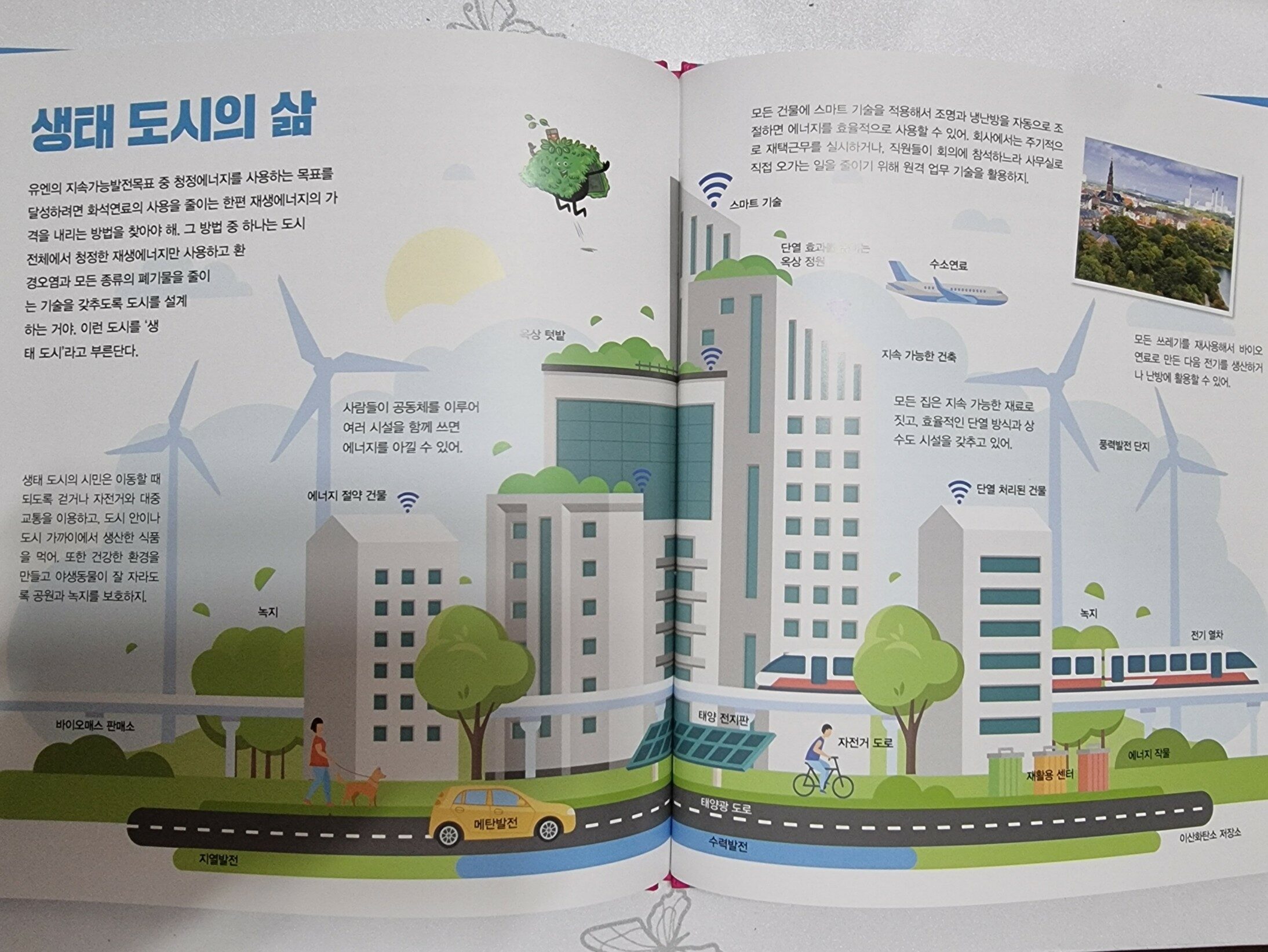 사람들은 과학기술의 발전으로 인해 삶을 매우 편리하게 살게 되었어요. 하지만 인간이 산업화를 거치며 짧은 시간 동안 놀라운 발전을 이루게 되면서 지구의 여기저기에서 환경이 파괴되고, 많은 환경 문제들이 생기기 시작했어요. 지구를 보호하고 지구환경을 깨끗하게 하는 일에 관심이 많은 요즘 유엔의 지속가능발전목표를 실천하는 슬기로운 지구생활이라는 타이틀이 이 책을 꼭 읽어보고 싶게 만들었습니다. 2015년 유엔은 지구와 우리의 삶에 영향을 미치는 가장 심각한 문제들을 해결하기 위해 지속가능발전목표를 세웠어요. 지속가능발전이란 미래를 위해 환경을 보호하고 사회 경제적 자원을 낭비하지 않으면서 현재의 우리 삶을 더 좋은 방향으로 발전시키는 것을 말해요. 이것을 위해서 2016년부터 2030년까지 달성할 17가지 목표를 정했는데 지속가능발전목표는 국가뿐 아니라 시민 한명한명, 즉 우리가 다함께 일상생활에서 노력해야 이룰 수 있어요. 이것은 결국 지구와 우리들 모두를 위한 일이에요. 우리는 일상생활에서 매일 에너지를 사용해요. 아마 에너지를 사용하지 말고 일상을 살아보라고 하면 거의 불가능에 가까울 거에요. 이 책을 읽으면서 도입부터 놀라웠던 건 아직도 현대식 전기를 쓰지 못하는 사람들이 전 세계에 약 7억 9,000만 명이나 있다는 것이었어요. 에너지를 사용함에 있어서 모든 사람이 항상 에너지를 필요할 때마다 쓸 수 있는 건 아니라는 거에요. 깨끗하지 않거나 안전하지 않은 에너지도 많다고 하니 결국 우리가 언제 어디서든 누구나 필요한 에너지를 쓸 수 있어야 하고, 깨끗하고 효율적인 에너지를 사용할 수 있도록 문제를 해결한다면 세계인의 삶이 더 나아지는 것은 물론 지구와 환경도 보호할 수 있을 거에요. 에너지가 없다면 우리의 일상은 모두 멈추고 말 거에요. 이 책에서는 에너지 사용에 대한 여러가지 내용을 설명해 주면서 우리가 어떻게 하면 슬기로운 지구생활을 할 수 있을지 알려주고 있어요. 책에서 알려주고 있듯 성공적인 모범 사례도 있긴 하지만 많은 나라들이 노력하고 있음에도 불구하고 아직 남은 과제가 많아요. 우리가 지속 가능한 발전을 위해 더욱 노력해야 하겠더라고요. 모든 사람에게 현대적이고 안전한 에너지를 비싸지 않은 가격으로 제공하고 전 세계적으로 재생에너지의 생산량과 사용량을 늘이고 재생에너지와 에너지 효율, 청정에너지 등과 관련된 기술을 발전시키고 이를 위해 전 세계가 지식을 나누고 협력하고 청정에너지를 이용해 만든 현대적이고 지속 가능한 전력을 누구나 이용할 수 있도록 가장 가난한 나라의 에너지 생산 기술과 시설을 개선한다면 우리는 슬기로운 지구 생활을 해낼 수 있을 거에요. 이 책을 읽으며 다시 한 번 지구 환경을 보호하는 일은 우리 모두가 노력해야 하는 일임을 느꼈고, 무엇보다 생태 도시의 삶을 살 수 있다면 너무 좋겠다는 생각을 했습니다. 특히 분리수거를 하고 쓰레기를 버리면서도 제대로 재활용되지 못하는 것이 많다고 해서 쓰레기를 버리는 일 자체에 늘 죄책감이 조금은 있었는데 모든 쓰레기를 재사용해서 바이오연료로 만든 다음 전기를 생산하거나 난방에 활용할 수 있다면 쓰레기를 버리면서도 죄책감을 조금은 덜어낼 수 있을 것 같은 생각이 들어요. 아이들이랑 평소 관심이 많은 주제이기도 하고 책을 읽으면서 알게되는 내용도 많고 생각해 볼 거리도 많아서 좋았습니다. 시리즈가 10권이나 된다고 하니 다른 주제의 책들도 모두 읽어보고 싶네요. 슬기로운 지구생활 시리즈 전부 읽고 슬기로운 지구인 되고 싶어요ㅎ 좋은 책 읽게 해주셔서 감사합니다. 이 글은 책세상 맘수다카페를 통해 출판사에서 도서를 무상으로 제공받아 읽고 솔직하게 작성한 후기입니다.