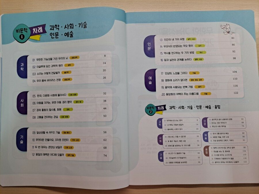 비문학 학습목차의 영역들을 살펴보면서