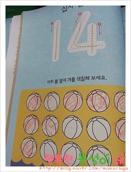 숫자가 있고..그 밑에는 숫자만큼의 공, 모자 , 불가사리..등등 이 그려져 있어요..