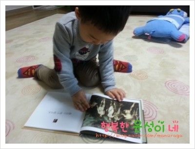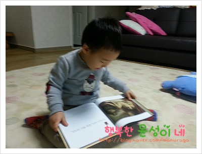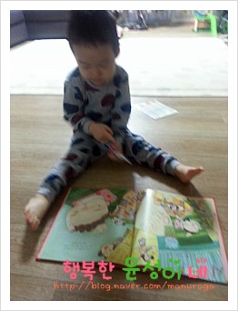 윤성이는 어린이집 가기전 책을 꼭 보는데요..