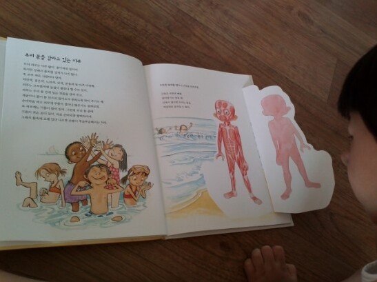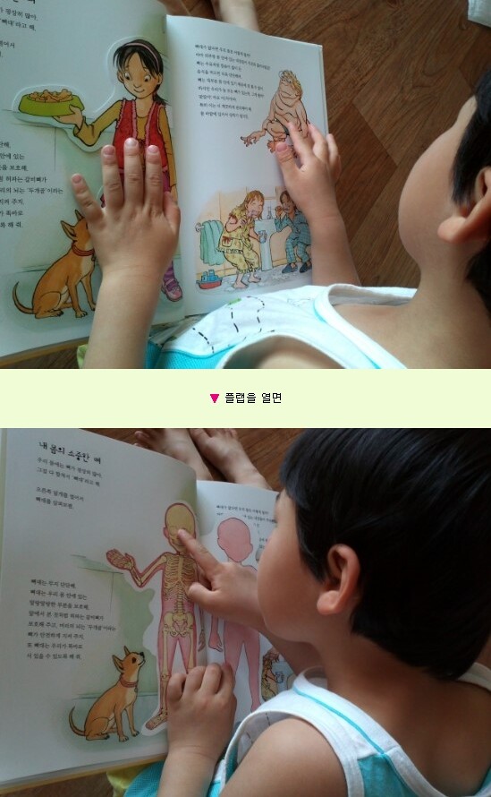 인체 플랩 그림책 <보인다! 우리 몸>은 피부, 호흡, 뼈, 몸속, 피등을