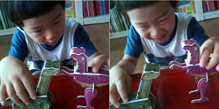 입체적인 모습으로 변해가는 공룡을 보며 신기하고 재미있는지 초집중모드랍니다~