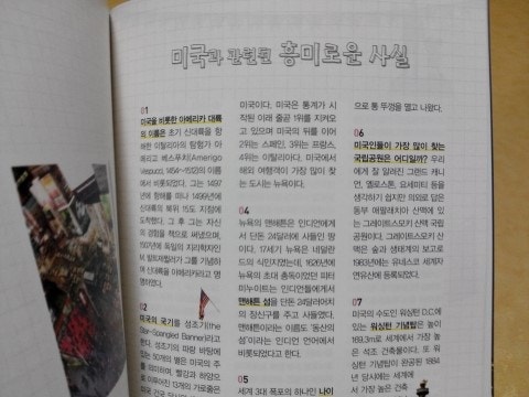 이 페이지는 책의 마지막 부분. 이 페이지를 넘기면 미국에서 가장 가볼 만한 도시와 국립공원, 대표적인 휴양지, 가족과 함께 떠나는 곳, 그리고 문화와 예술에 대한 여행지들이 몇 곳 소개되어 있네요.