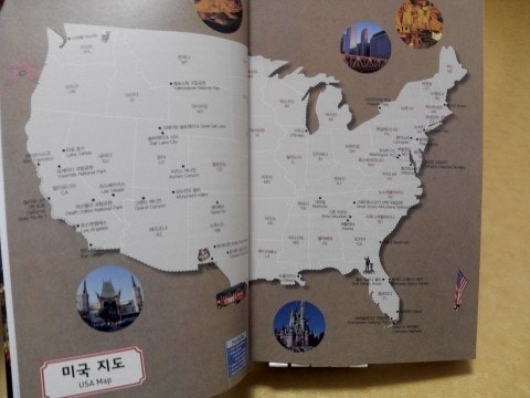 책을 펼치면 프롤로그에 이어 이렇게 미국지도가 나오고요. 동부, 서부 역시 따로 지도가 추가되어 있어요.