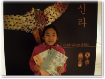 아이와 드라마 '선덕여왕'에 홀딱 반한지 언 두달이 다 되어간다. 본방은 시간관계상 못보고, 녹화해서 담날이면 저녁식사중에 열공하는게 언젠가부터 이어지는 우리모녀의 주중 행사가 되고 말았다. 선덕여왕, 김유신 그리고 미실과 비담 마지막으로 김춘추.. 모두 역사적 인물인데 TV 드라마로 각색된 '신라'는 인물 하나하나의 역사적 사명과 그 속에 펼쳐지는 인생여정이 참 흥미롭게 진행되어지는데, 조선이나 고려사에만 익숙하였던 우리에게신라사에 대한 많은 궁금증과 관심을 증폭시키게 된 막대한 영향을 미쳤음에 분명하다. 그렇지만 드라마적인 허구요소가 많이 가미되었기에, '선덕여왕'속의 극중인물들이 역사속에서 어떤 모습으로 어느 시기에 재현되었는지 정말 궁금해지기 시작했다. 특히 아이 교육상 어떻게 역사, 인물, 그리고 사건을 바로알게 할까하고 나름대로 고민하였다. 하여 내가 선택한 책은 박영규 선생님의 우리 역사 깊이 읽기 시리즈 중 '신라사 이야기'를 택하게 되었다. 마침 아이가 4학년이라 옛 도읍지와 시대별 문화재 교과과정과 시기가 너무도 잘 맞아떨어져서 더욱 'olleh~'였다. 신라사 이야기는 이렇게 총 3권으로 이루어져 있다 왜그리 바람은 많이 불고 추었는지... 우리의 역사적인 탐방(?)과 한평생 한번 볼까 말까한 귀하디 귀한 우리 문화재를 찾아가는 길이라서 그랬나보다. 하며 우리는 거센 바람에 못지 않게 비장함으로 박물관 계단너머로 훤히 보이는 남산타워를 바라보며 늦지않기를 바라는 마음으로 열심히 뛰었다. 입구에 다다르기도 전에 기획전시실로부터 길게 늘어선 대기줄을 향해 서둘러 갔다. 옆에서 관람객들을 통제하는 관리자께서 하시는 말씀..'아마 이쯤이면 여유있게 4시간 기다리면 될겁니다..' '이게 뭥밍~ 그럼 자정을 넘고 지하철 끊기고 우리 모녀는 어쩌란 말씀~ㅠ.ㅠ' 결국 몽유도원도와 천마도와의 기약없는 만남을 뒤로하고 우린 '신라' 전시관에 한달음에 도착했다. 쨔쟌~~~ 이어 북한산에 있는 진흥왕 순수비 앞에서 책과 앞께 '개구리 뒷다리~' .