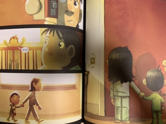 이 책은 제가 소리내어 읽어줄 때도 아이가 좋아했지만, 특유의 환상적 분위기에 푹 젖어서 보기엔 조용히 혼자 책장을 넘겨가며 보는 것이 더 어울리더라고요. 저희 아이도 제가 읽어준 이후에 혼자 책을 넘겨보며 그림을 감상하는 모습을 보이기도 했답니다.