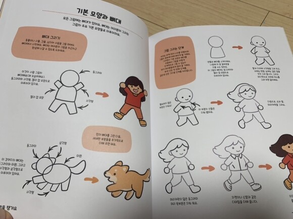 도입부에는 그림을 그리는 기초에 대한 설명이 나와요. 기본모양과 뼈대 잘 잡기가 중요하단걸 배우게 됩니다
