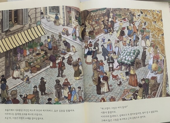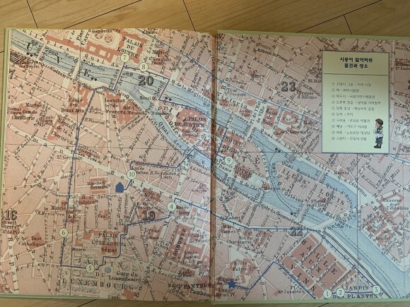 이 책은 맨 뒷장에 그림들이 어떤 사진이나 그림을 모티프로 했는지, 파리 어느 지역을 그린 것인지 알려주어서 더욱 파리라는 도시에 푹 빠져들게 도와주지요.