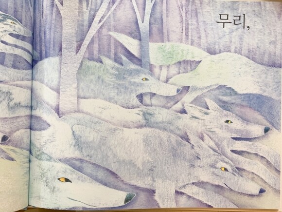 무리를 지어 달리고 있는 늑대 무리가 눈길을 사로잡죠.